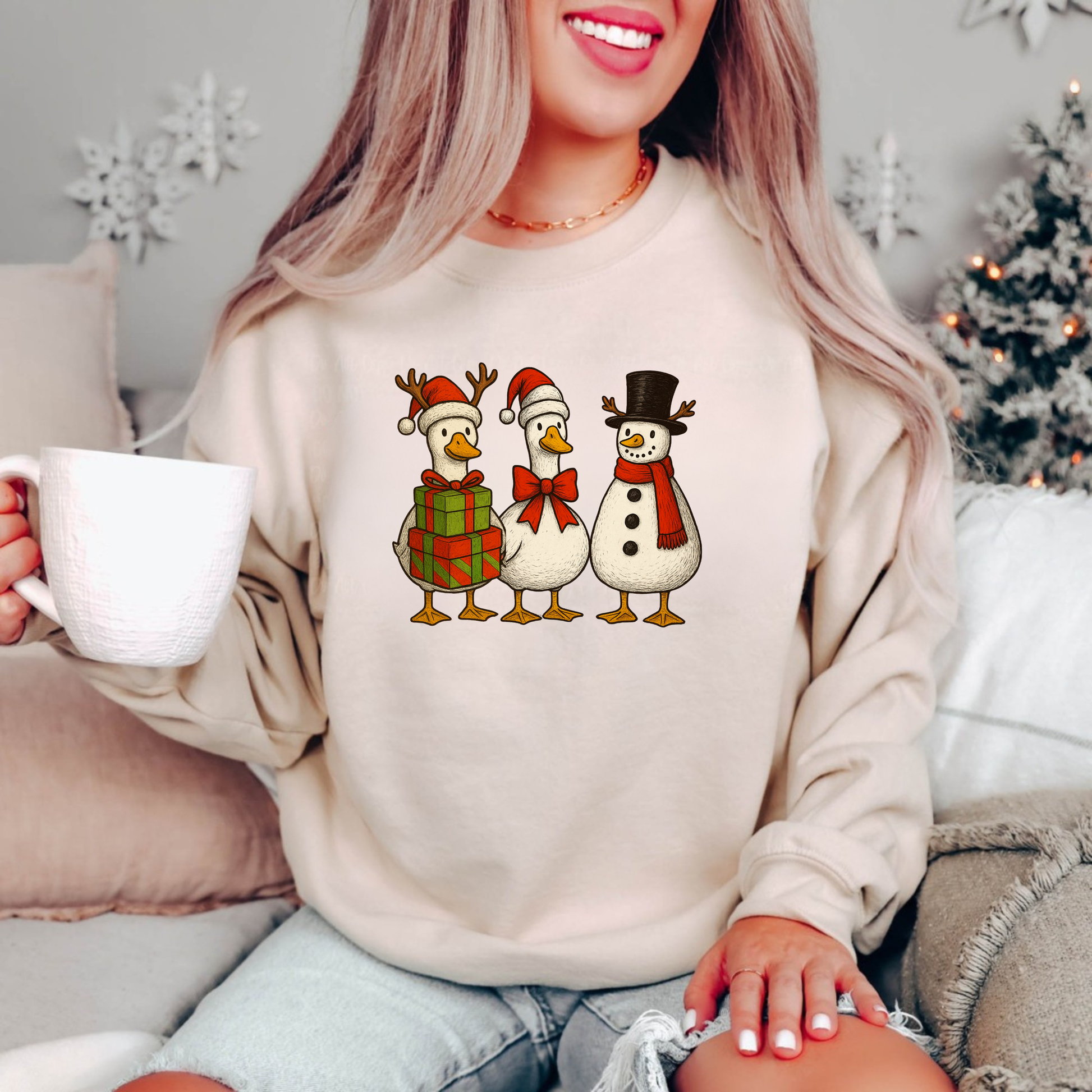 Strut into the season with our Christmas Goose sweater—because nothing says "holiday spirit" like a flock of festive geese taking over your wardrobe. This women's pullover pairs playful poultry with cozy comfort, delivering laughs and warmth in equal measure. Perfect for ugly sweater parties, family gatherings, or anyone who refuses to take their holiday fashion too seriously. Embrace the chaos, embrace the geese.