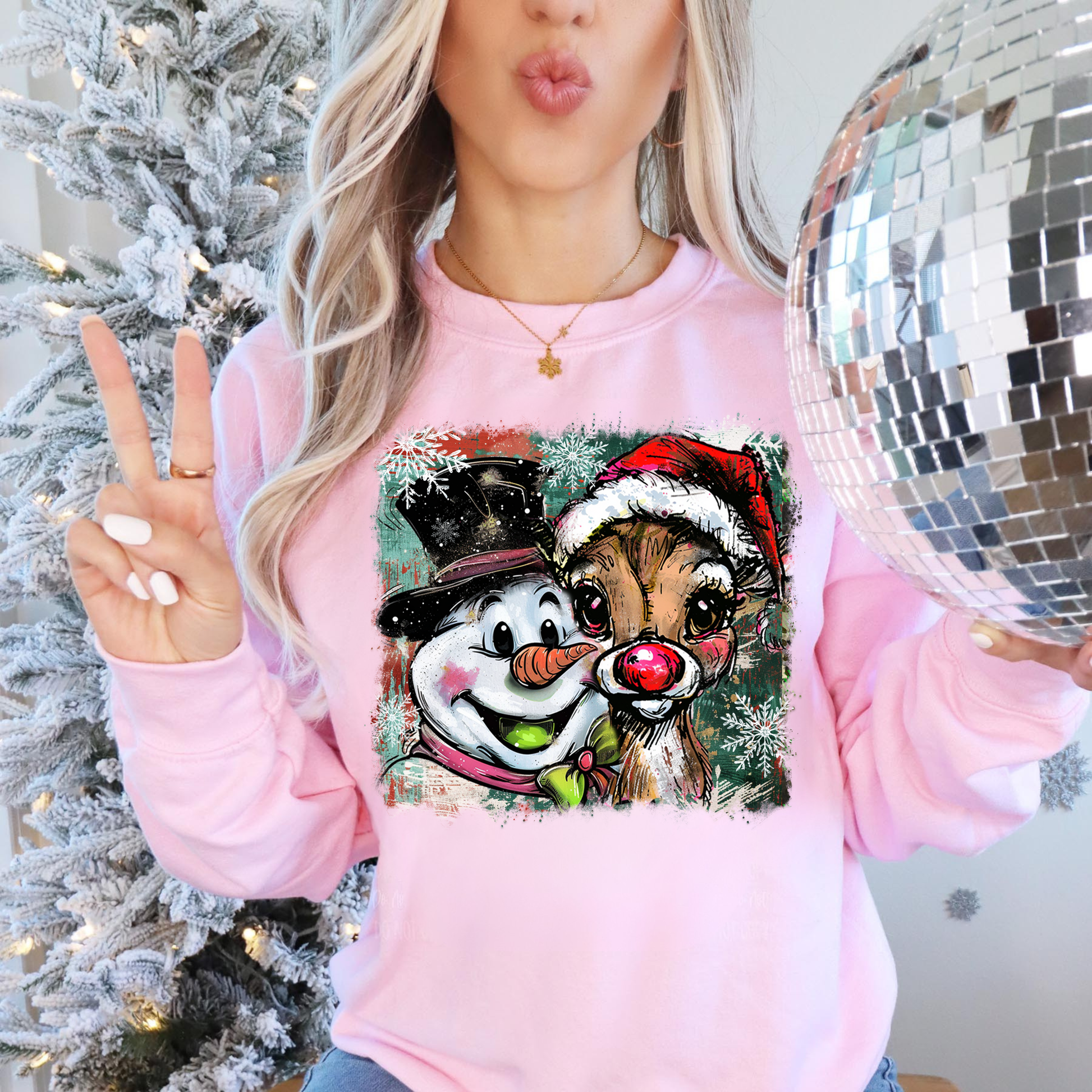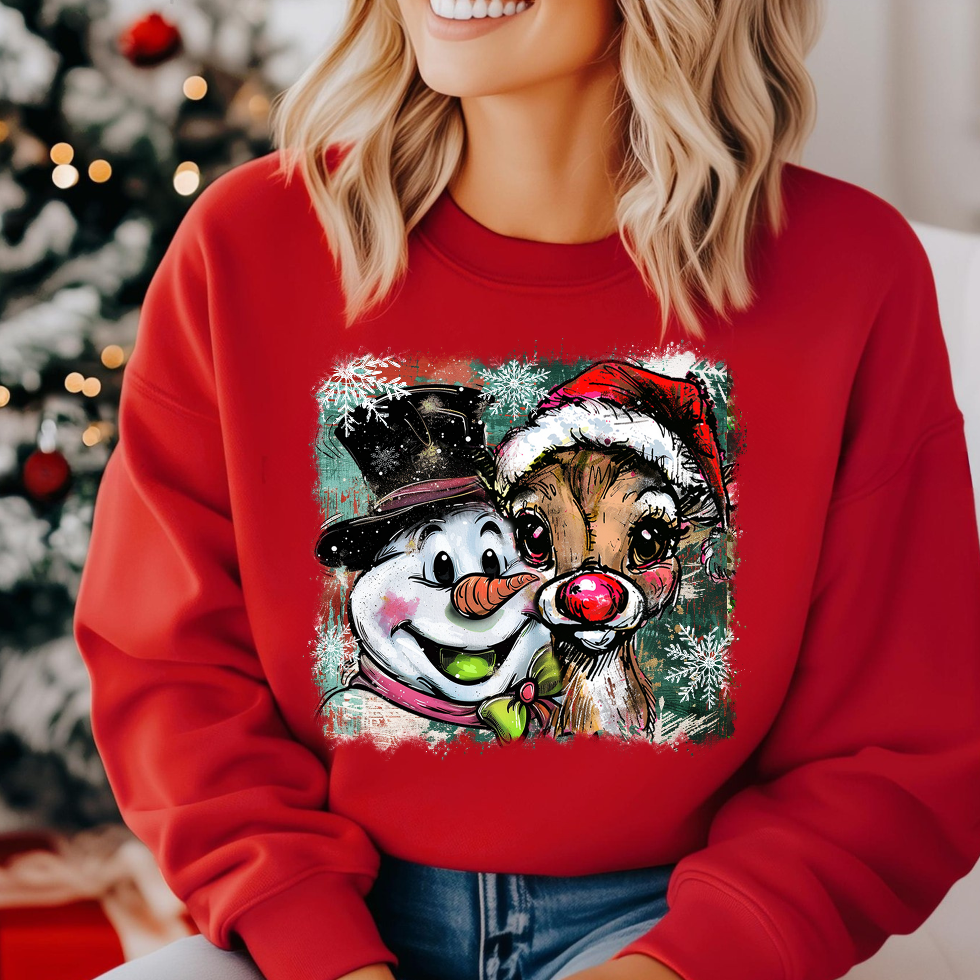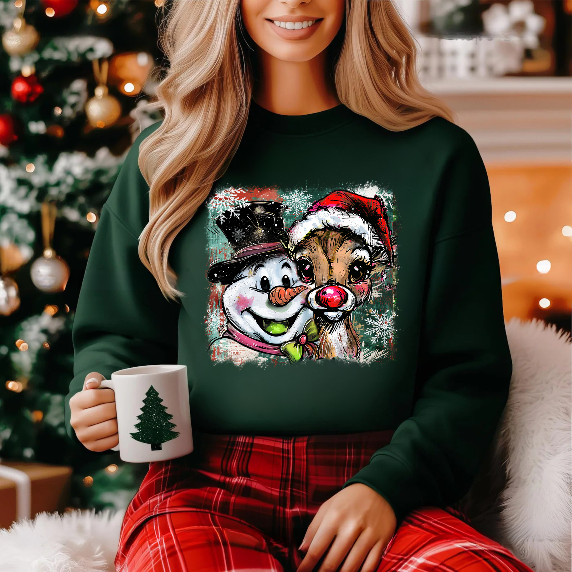 Embrace your inner winter sass with this playful holiday sweater showcasing a cheerful snowman and his reindeer bestie. Perfect for spreading festive cheer with a wink and a smile, this cozy knit keeps you warm while celebrating the season's most adorable duo. Whether you're hitting the slopes or sipping cocoa by the fire, Snow Buddies delivers holiday spirit with attitude.