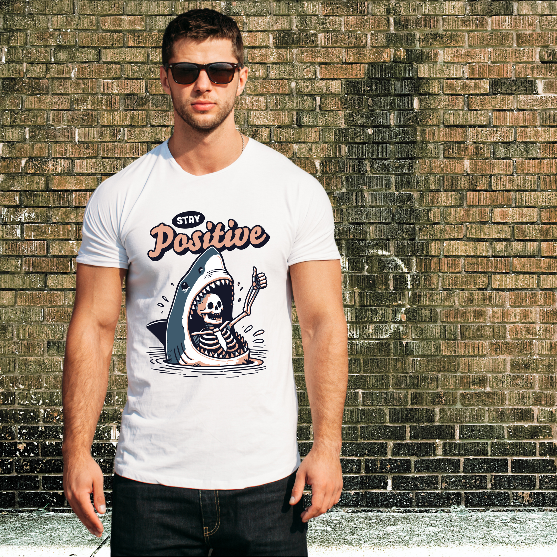 It's a fun and edgy way to remind yourself and others to keep a positive attitude no matter what. Perfect for casual wear with a touch of humour and attitude.